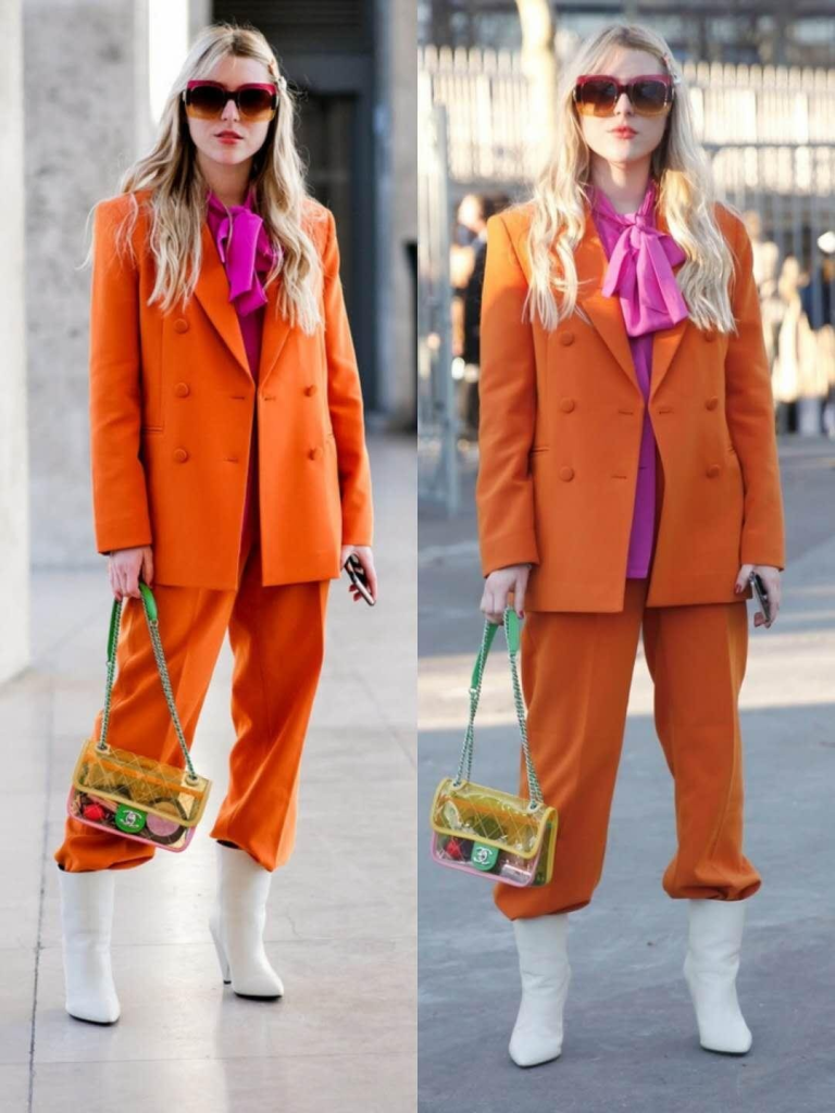 臟橘色看起來非常的活潑,其顏色也是非常的靚麗的,這樣的一種顏色,穿在身上是非常的性感和時尚的,它也非常的顯白,適合各種膚色的人。
