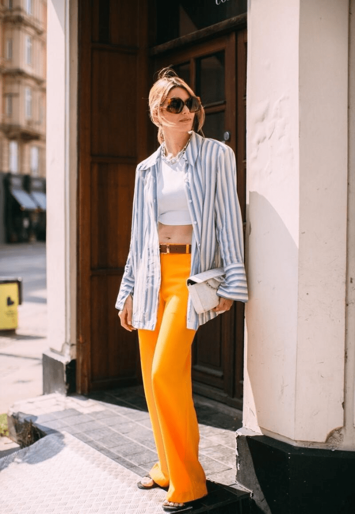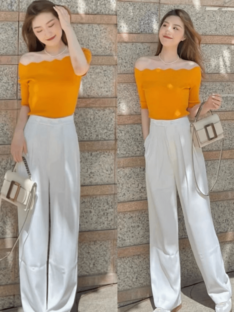 闊腿褲非常的顯瘦,我們在日常生活中常見的是黑色或者藍色的闊腿褲,闊腿褲十分的百搭,臟橘色的闊腿褲也是如此。